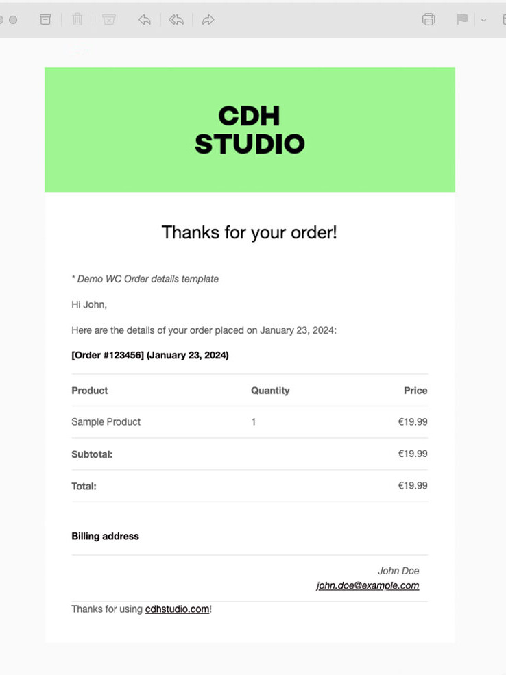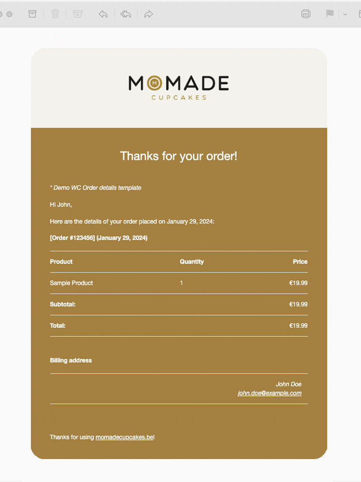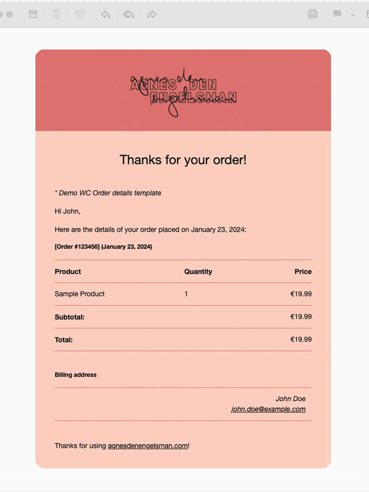 In onze studio leggen we sterk de nadruk op esthetiek, en we begrijpen dat de standaard WooCommerce emails niet altijd voldoen aan de visuele standaarden die we nastreven.